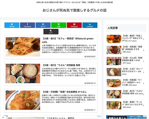 紹介しているお店は、大阪が多いですね。グルメジャンルは地域を絞った方が、分かりやすく、リピーターがつきやすいです。地方のテレビや新聞などのメディアからも声がかかる可能性があります。大阪グルメの専門家を目指して、ぜひ頑張ってください。