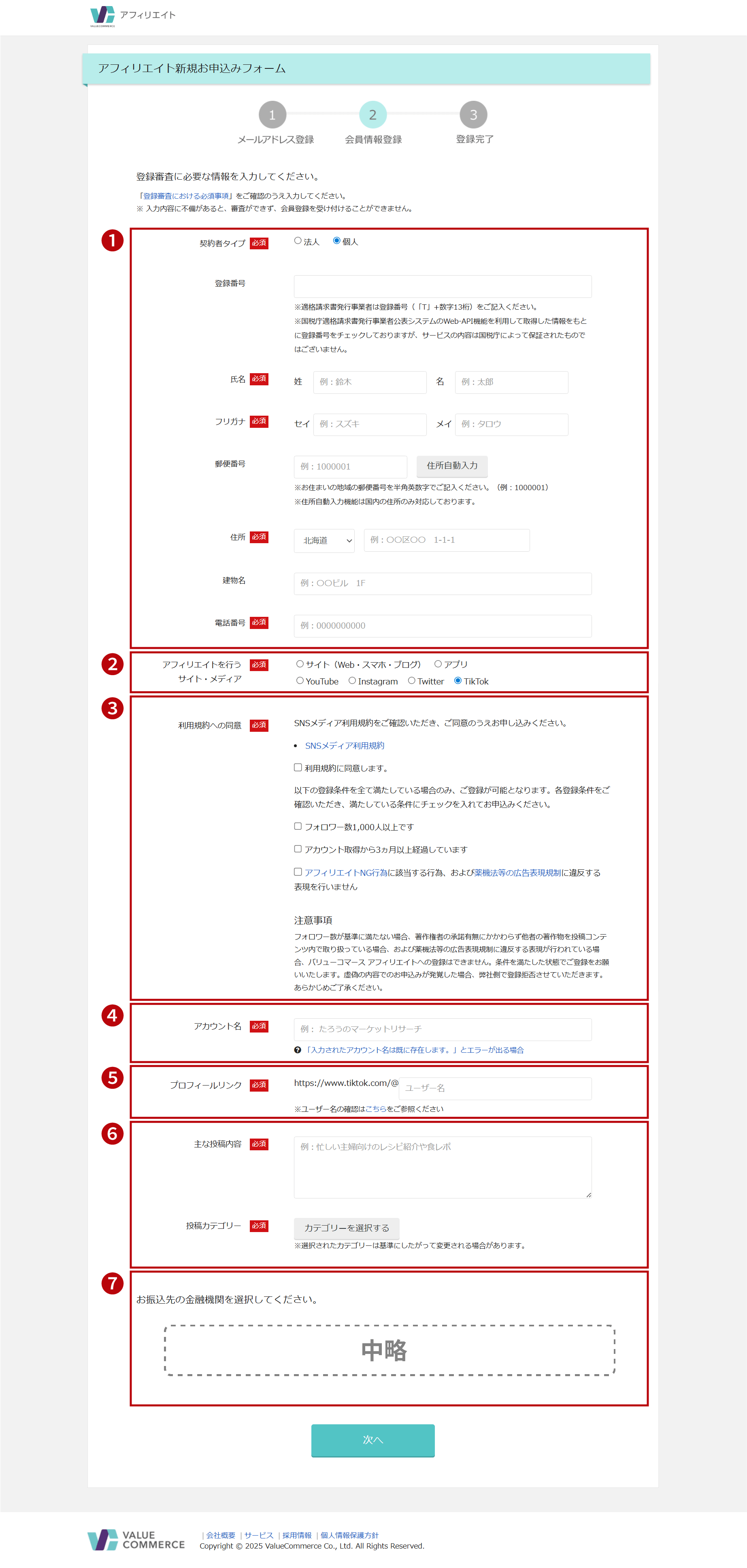 2.必要事項の入力