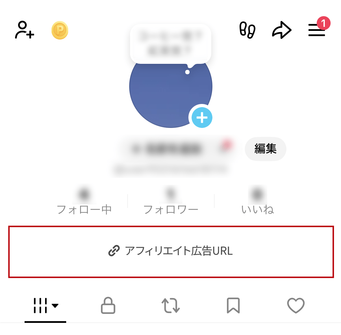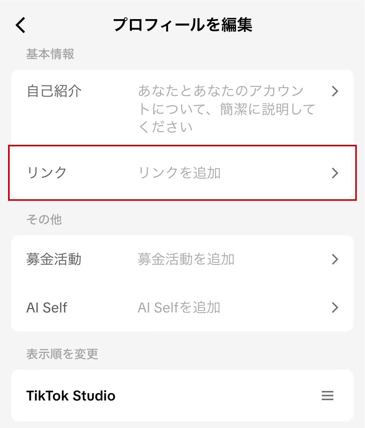 - 「プロフィール編集」>「リンク追加」を選択