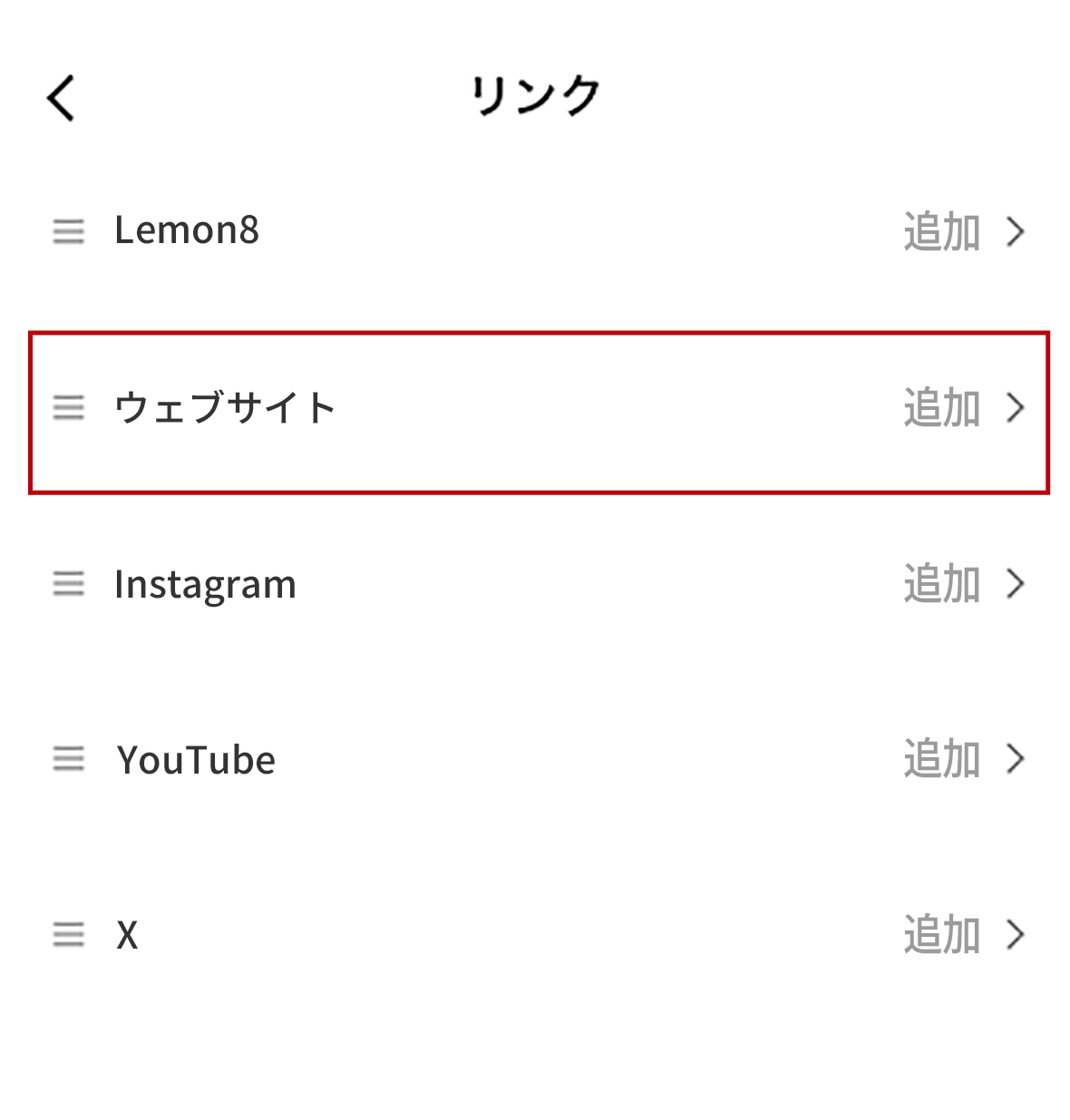 3.リンク項目から「ウェブサイト」を選択
